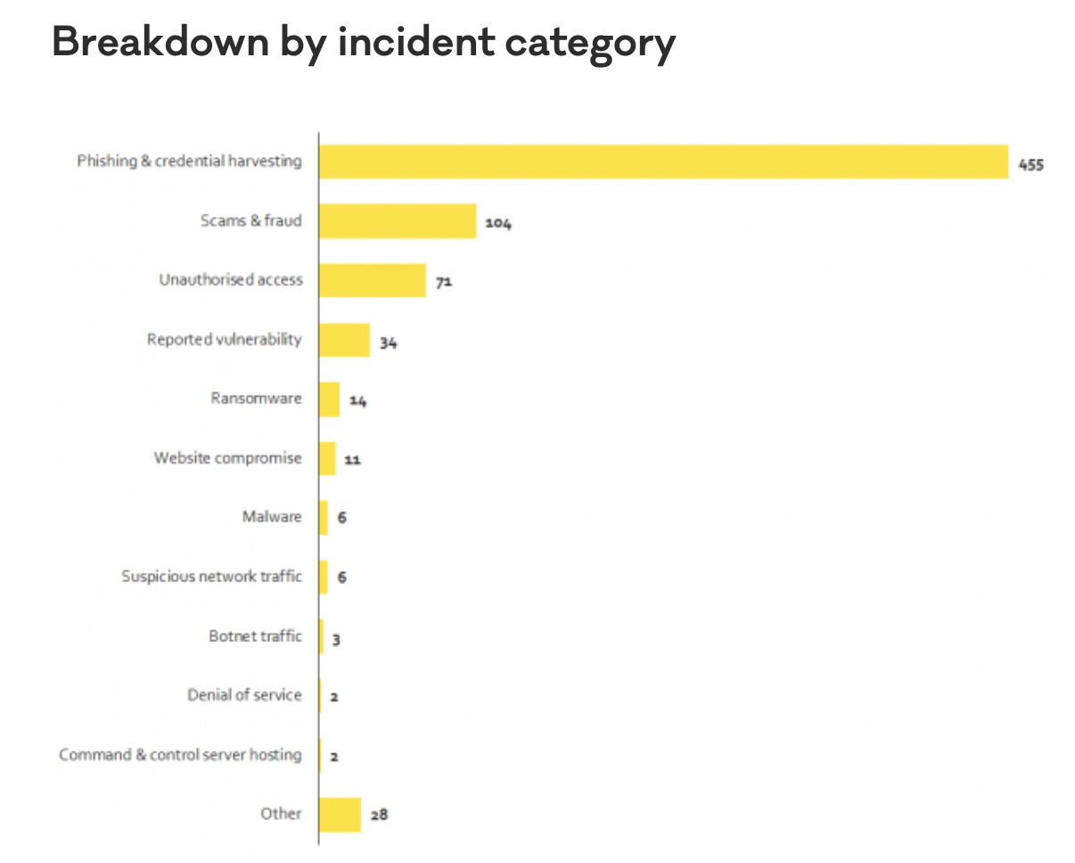 337 of the phishing and credential harvesting reports came from the financial sector, and 321 of these reports showed hackers masquerading as well-known New Zealand brands.